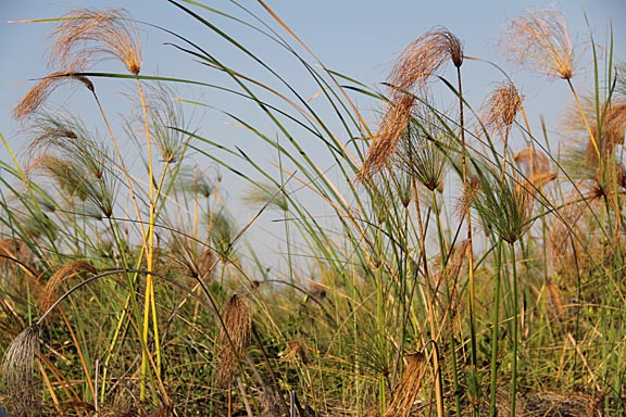 through papyrus growing as much as three meters tall and brushing the canvas canopy over our heads.