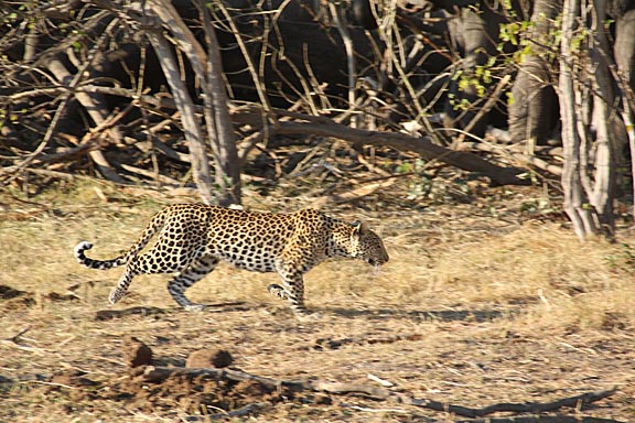 The object of our dash through the bush was our first leopard sighting. Look close in the background and you’ll see part of the herd of elephants that left the dung piles in the right foreground. From my viewpoint about a hundred feet away, it was apparent that neither the elephants nor the leopard shared my excitement over the event.