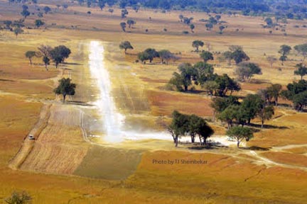 Just a bit over 1,200 meters long and 18 wide, the runway surface was soil calcrete. Peter, our escort, said it can be very slippery when wet. Fortunately for us it hadn’t rained in a while and except for a few humps and bumps no problem at all. The Shinde Rangers had checked the strip for animals and were waiting for us at the clearing near the close end.
