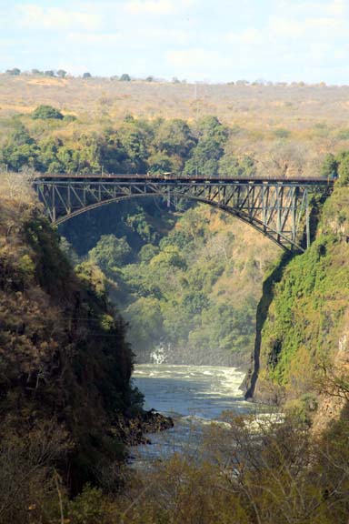 Touted to be the world’s highest bridge when it was completed in 1904, the Victoria Falls Railway Bridge spans the U-turn of the river from the first to second gorge.