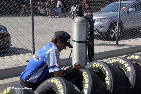 Checking tire pressures before the race