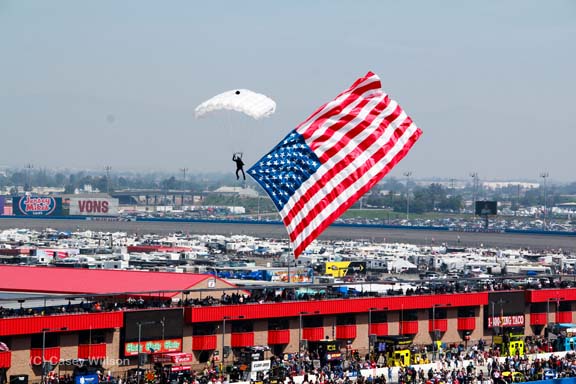 Part of the opening ceremonies includes parachuting in the Stars and Stripes