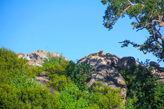 It also provides a vantage point for lion prides, such as the one in these pictures. During the day, the lions sprawl over the rocks and under whatever shade the trees might provide.
